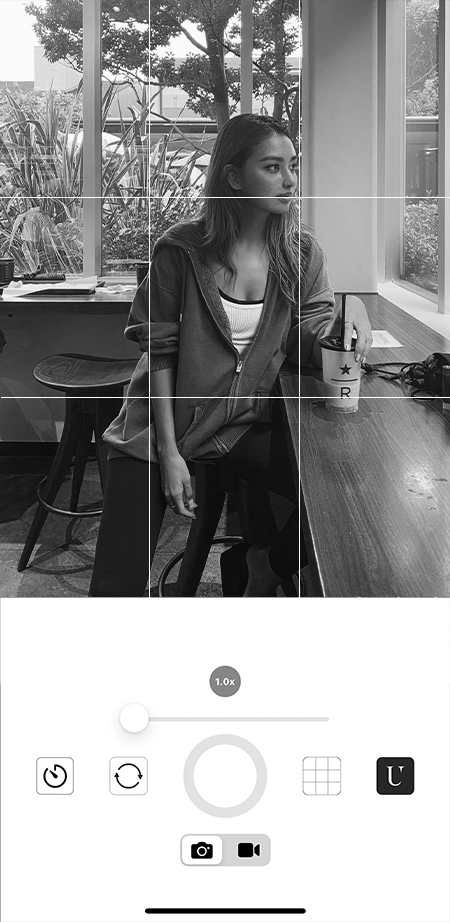 写真の品質を上げるためには被写体が前後左右に傾いていない安定した構図が基本です。UUULAには撮影画面上に垂直水平を検知するシグナルが出るため、感覚に頼らず確実に安定した構図を作ることができます。
