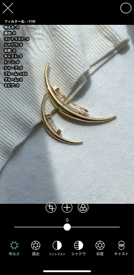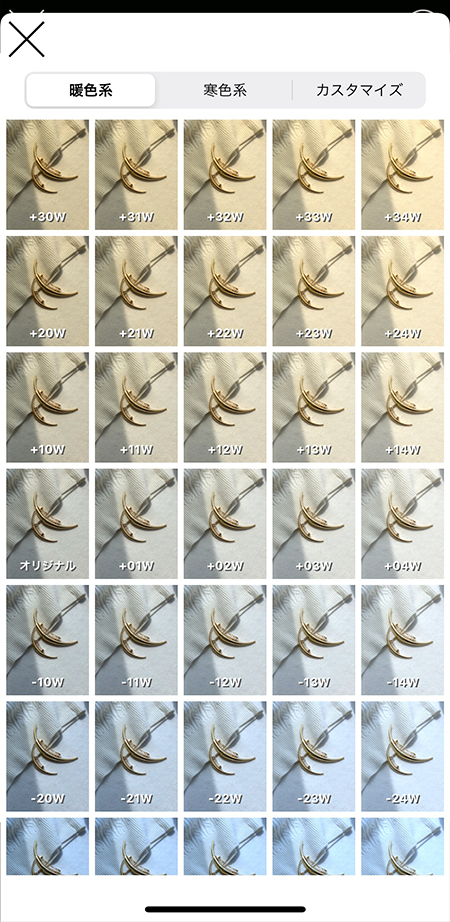ビジネスユースにおいて商品をよく見せようと過度に加工することは厳禁です。商品写真の大原則は「目で見たありのままを伝えること」です。68フィルターを使えば、室内で撮影したために暗く写ったり、照明で黄色がかったりといった本来の色彩からずれてしまったものをワンタップで元に戻すことができます。